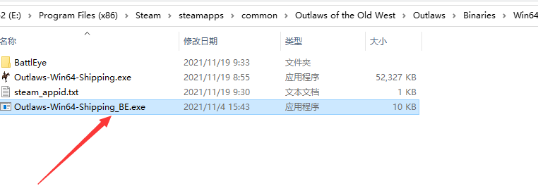4.然后把解压的文件Outlaws-Win64-Shipping_BE.exe复制到游戏Outlaws\Binaries\Win64根目录中进行覆盖