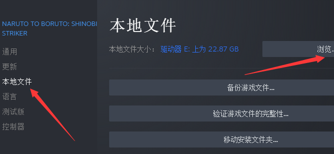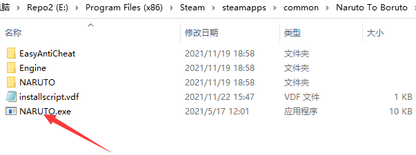 注意:如果需要还原文件,可以转到游戏属性,单击本地文件,单击验证游戏文件的完整性即可还原文件或者"NARUTO.exe"提前备份。