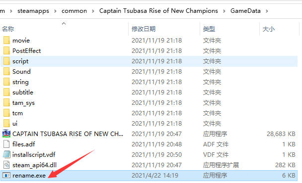 4.然后把解压的文件rename.exe复制到游戏根目录(GameData)中进行覆盖