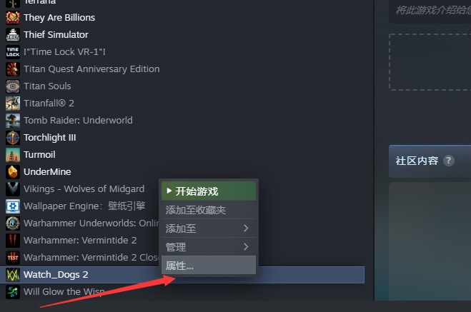 1.右键单击Steam中的游戏,然后转到“属性”。