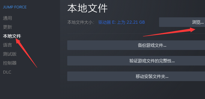 注意:如果需要还原文件,可以转到游戏属性,单击本地文件,单击验证游戏文件的完整性即可还原文件或者"JUMP_FORCE.exe"提前备份。