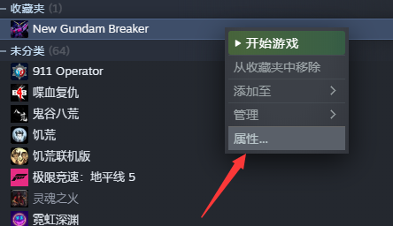 2.下载完成后,解压到桌面或者其他文件夹里,然后打开steam找到新高达破坏者,右键单击游戏,然后转到“属性”。