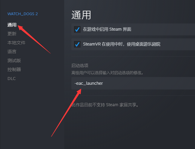 2.单击通用,设置启动选项。输入 -eac_launcher,然后单击确定。